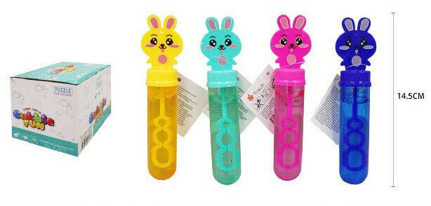 Cuki Nyuszi Buborékfújó - Vidám szórakozás a családnak! ? Ez a bájos nyuszi formájú buborékfújó tökéletes választás a gyerekeknek és a családnak, hogy vidám perceket töltsenek együtt a szabadban. A 30 ml-es kiszerelés ideális a könnyű használathoz, a 14 cm-es méret pedig kényelmes fogást biztosít a kicsiknek. A display 24 darabot tartalmaz, így remek választás partikra, rendezvényekre vagy akár ajándéknak is. Főbb jellemzők: ? Aranyos nyuszi design: A gyerekek imádni fogják ezt a bájos buborékfújót. ? 30 ml buborékfolyadék: Elegendő mennyiség a hosszantartó szórakozáshoz. ? 14 cm méret: Kényelmesen elfér a kis kezekben. ? 24 db/display: Tökéletes választás partikra, rendezvényekre vagy ajándéknak. ? Különböző színekben: A display vegyes színekben tartalmazza a buborékfújókat (sárga, kék, rózsaszín, lila). Használati útmutató: Csavard le a nyuszi fejét. Mártsd a buborékfújó pálcát a folyadékba. Fújj gyönyörű buborékokat! ✨ Tipp: A buborékfújó használata közben figyelj arra, hogy a folyadék ne kerüljön a szembe. Ha mégis megtörténik, bő vízzel öblítsd ki.