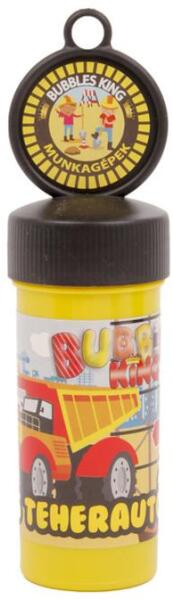 A(z) **Munkagépes nagy buborékfújó** – Versenyre fel! Fújjatok nagy buborékokat a munkagépes buborékfújóval, aki nagyobb buborékot tud fújni az nyer!Fújj színes buborékokat a legegyszerűbb módon! A buborékfújó egy henger alakú kis tartály, aminek a munkagépes kupakjába egy buborékfújó keret van beépítve. Mártsd a keretet a folyadékba, majd emeld ki és fújj rá a lyukra! Ha lassan fújod, nagyobb, ha erősen fújod, sok kicsi buborékot fog gyártani neked a kis szerkezet!