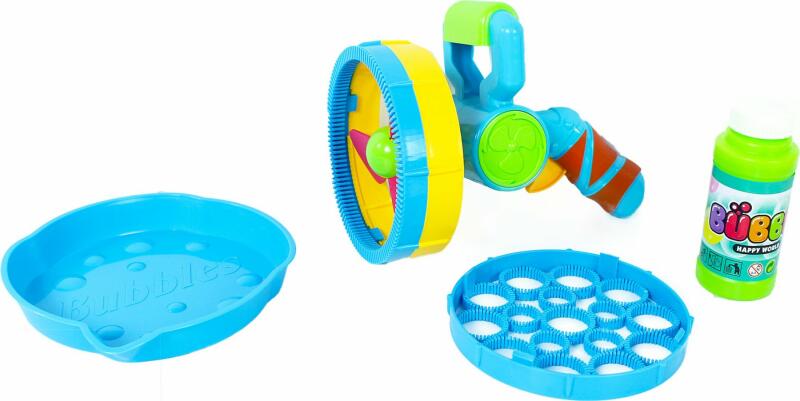Jó szórakozást kívánunk ezzel a szenzációs mega buborékfegyverrel. A pisztolynak két tartozéka van a különböző méretű buborékok számára. Ideális kültéri vagy beltéri játékhoz. A fegyver 2 db AA elemmel működik, melyeket a csomag nem tartalmaz. Kor: 3+